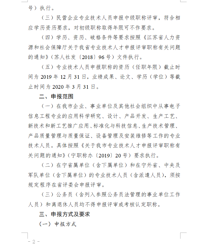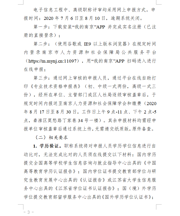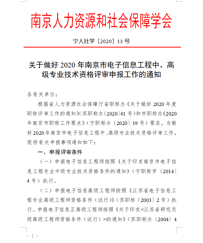 关于做好 2020 年南京市电子信息工程中、高级专业技术资格评审申报工作的通知