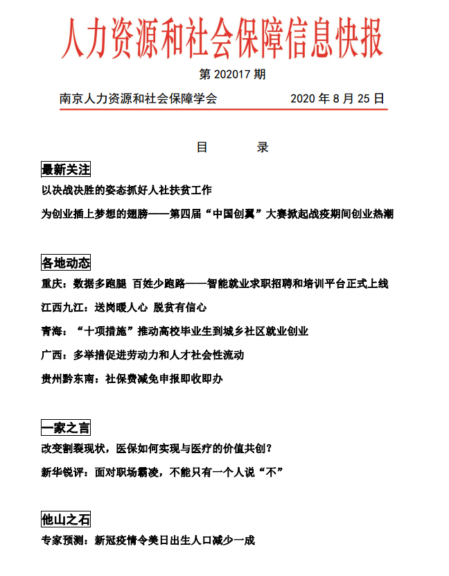 南京人力资源和社会保障信息快报 第2017期