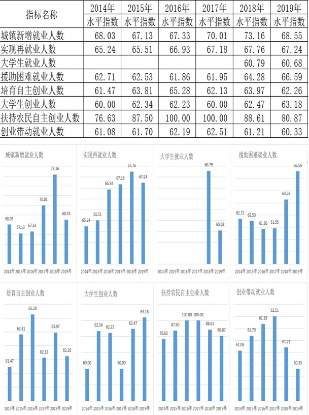 就业创业工作绩效考核,从内容上讲,有指标任务完成、行政工作开展、政策法规执行、财政资金管理、改革创新举措等5项评价内容;从方式上讲,地方自查、上级检查、数据比对、情况公示等4个评价环节。就指标任务完成情况而言,运用“无量纲化”统计方法,自查测算自身的水平指数、发展指数和综合指数,有助于放眼南京市“11+1”区,对标找差地知晓自身的位次、存在的短板、进位的目标。