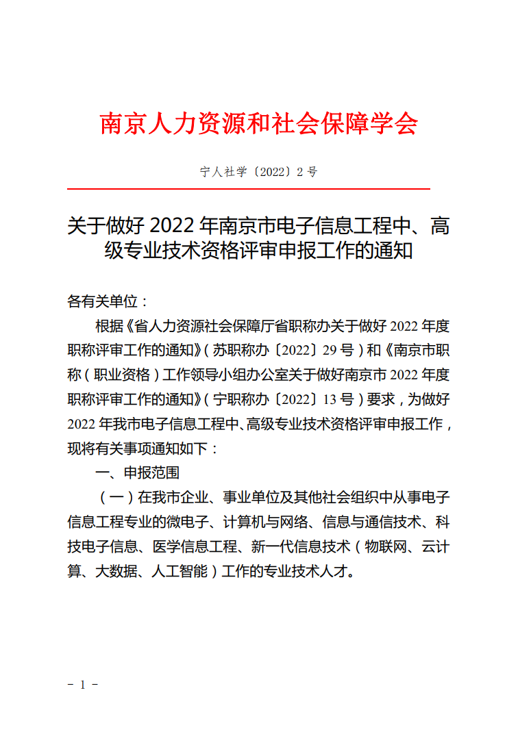 关于做好2022年南京市电子信息工程中、高级专业技术资格评审申报工作的通知