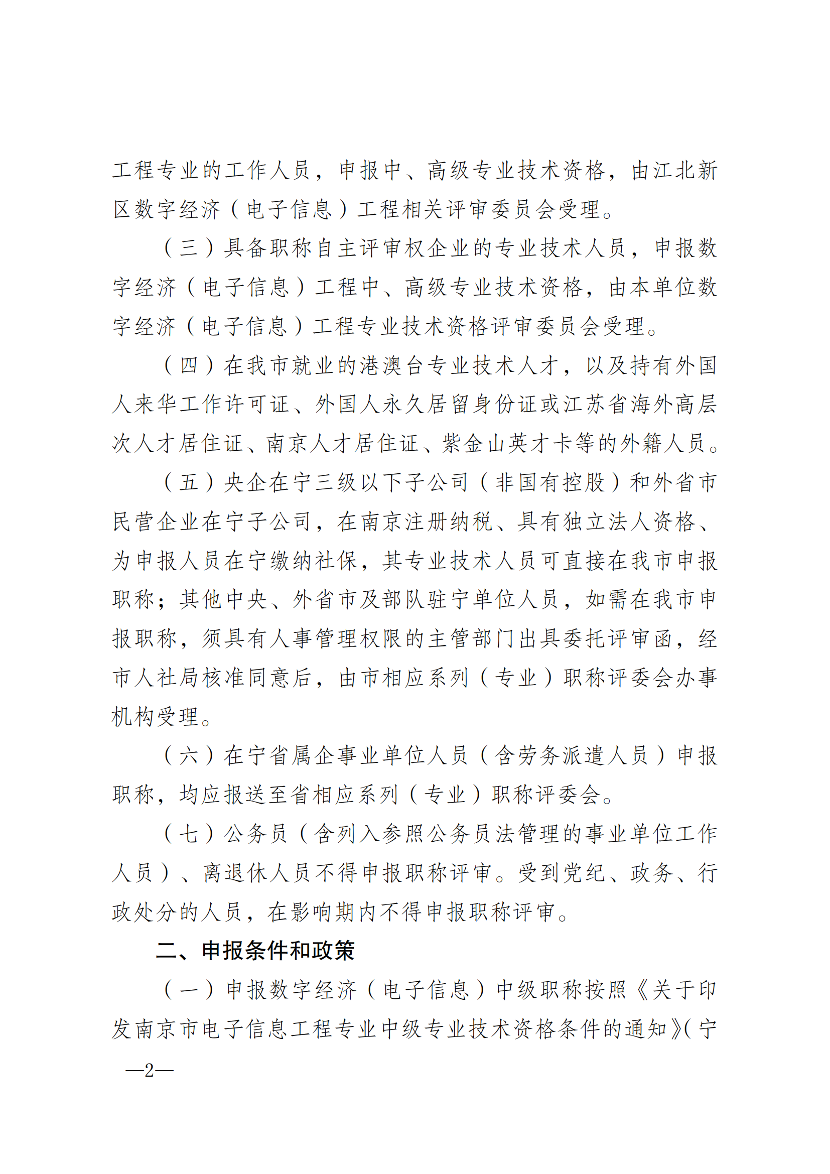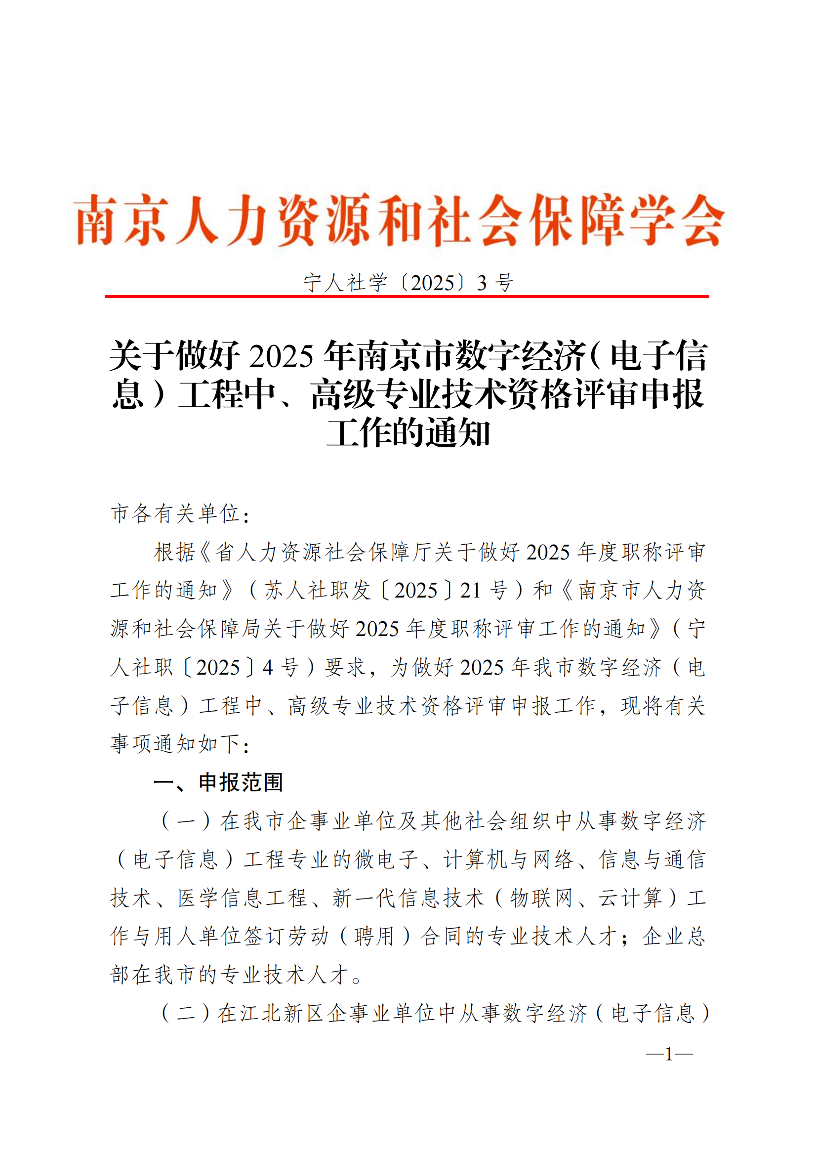 关于做好2025年南京市数字经济(电子信息)中、高级专业技术资格评审申报工作的通知